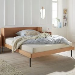 Lit Naturel Plaqué Chêne Avec Pieds En Tube D’acier 160×200 – LT0080