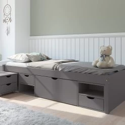 Lit Tiroir En Bois Massif 90×200 Gris – LT12013
