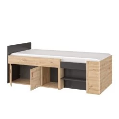 Lit Enfant Avec Rangements En Bois Imitation ChĂȘne Clair Et Noir 90×200 – LT5055