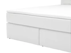 Ensemble Boxspring Complet TĂȘte De Lit Avec Leds + Sommiers + Matelas + Surmatelas BILBAO – 160 X 200 Cm – Simili – Blanc