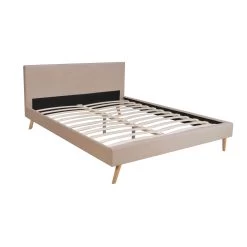 Lit En Bois Avec Tissu Gris Clair – LT14010