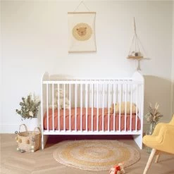 Lit BĂ©bĂ© En Bois Massif Blanc Avec Sommier RĂ©glable En Hauteur 60×120