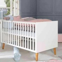 Lit Bébé évolutif En Bois Massif Blanc Avec Sommier Réglable En Hauteur 60x120
