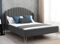 Lit 160 X 200 Cm Avec TĂȘte De Lit OndulĂ©e – Velours – Gris – SAGALI