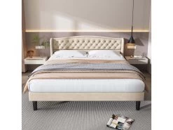 Lit Adulte Avec Sommier Ă Lattes – 160x200cm – Velours – Beige
