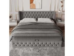 Lit Adulte CapitonnĂ© En Velours Avec Sommier Ă Lattes – 140x200cm – Gris
