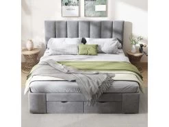 Lit Adulte RembourrĂ© Avec 4 Tiroirs + Sommier Ă Lattes – 140x200cm – Gris