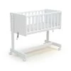 Berceau bébé en bois à roulettes, alliant barreaux et panneaux en bois de hêtre. Par son design sobre et épuré, ce berceau bébé est l’élément parfait pour accompagner bébé lors de ses premiers mois. A barreaux, la surveillance et l’éveil de votre enfant se fera facilement. Afin de vous déplacer dans toutes les pièces de votre maison, il est pourvu de 4 roulettes directionnelles à freins. Il est conditionné avec un matelas de taille 40×80 cm, d’une épaisseur de 4 cm et d’une densité de 16 kg/m².