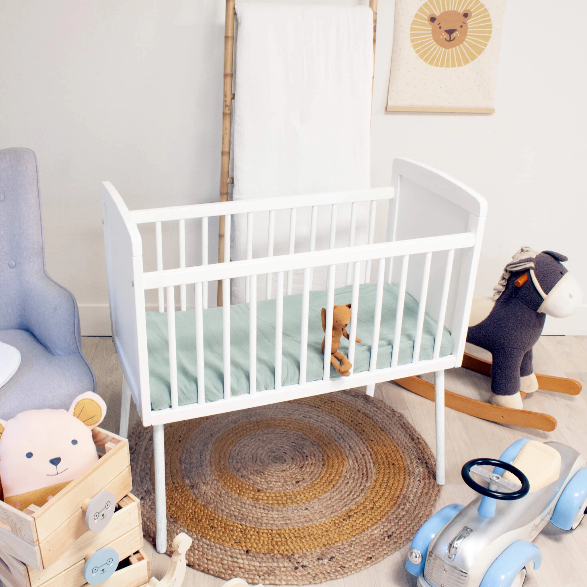 Attention, pour des raisons de sécurité, ce berceau n’est plus à utiliser dès lors que l’enfant sait s’agenouiller, s’asseoir ou se lever seul.