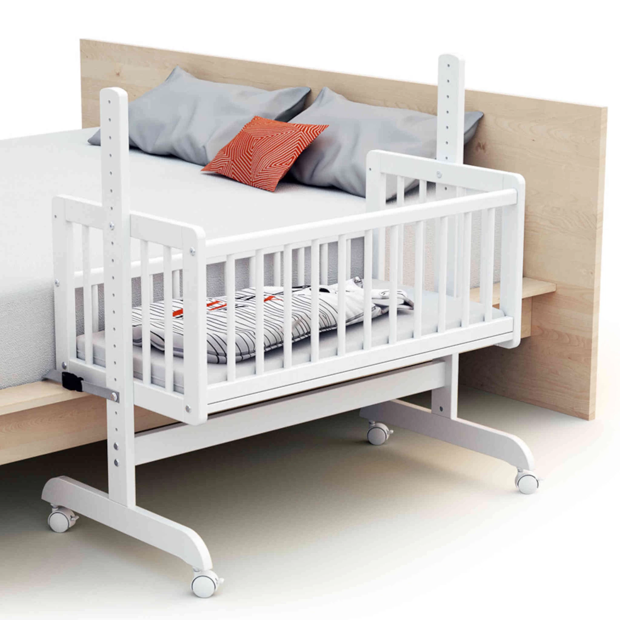 Ce berceau cododo existe en coloris blanc, gris et hĂŞtre verni.