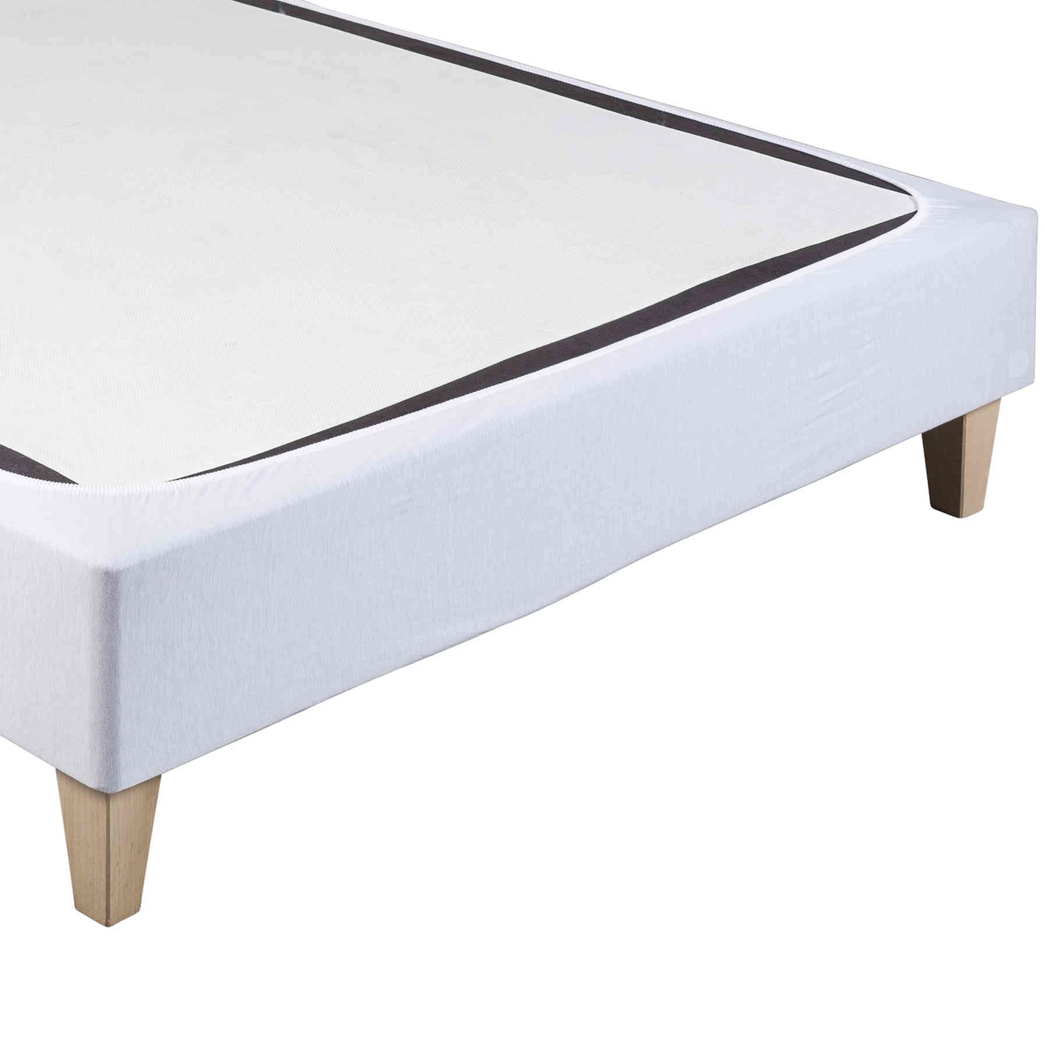 Cache-sommier blanc en jersey extensible. Idéal comme accessoire de décoration et de protection, ce cache-sommier en forme de bande enveloppante élastiquée permet d’habiller votre sommier ou de le rénover en le recouvrant facilement.