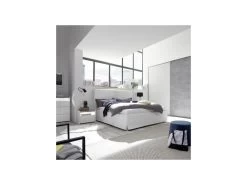 Vous réaliserez une déco cosy et contemporaine à la fois dans votre chambre à coucher avec ce mobilier totalement revêtu d’un simili cuir teinte Blanc pur.