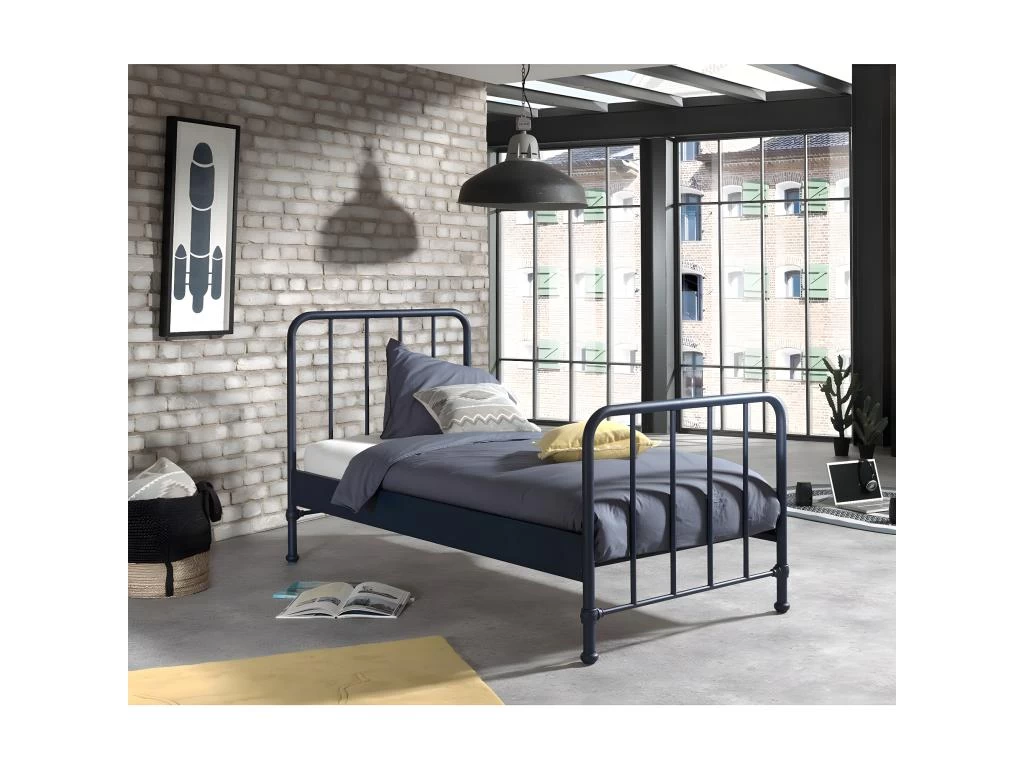 Lit à Barreaux 90x200cm Métal Poudré Bleu de la gamme Chicago.