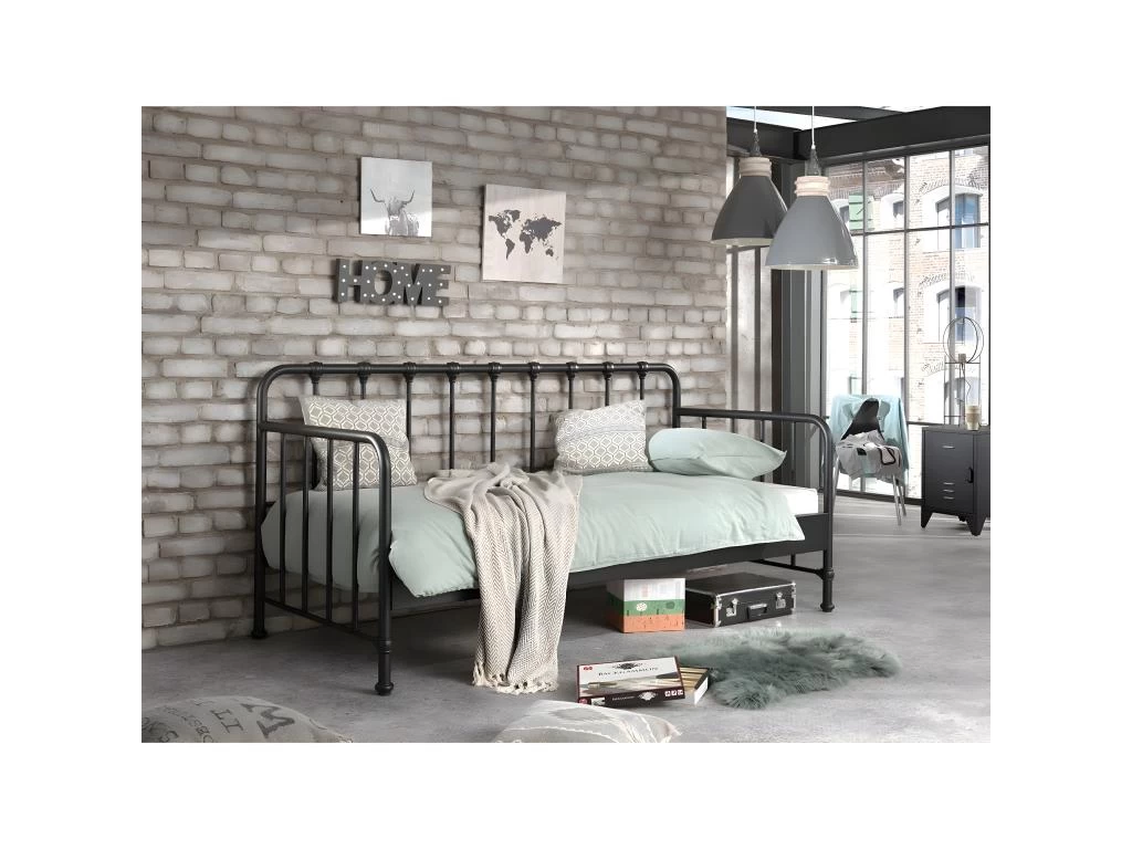 Lit Banquette à Barreaux 90x200cm Métal Noir de la gamme Chicago.