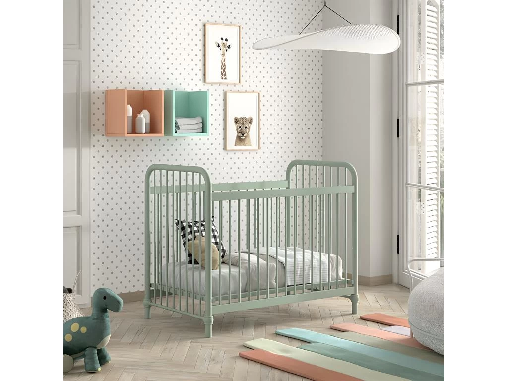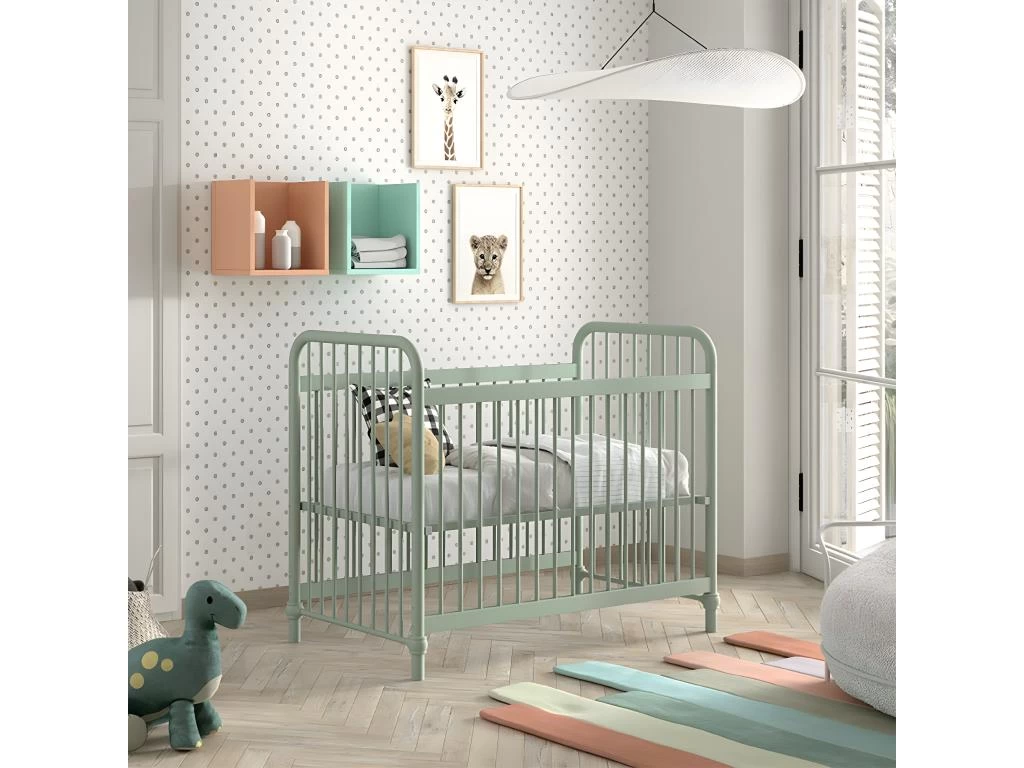 Lit Bébé à Barreaux 60x120cm Hauteur Réglable Métal Poudré Vert Olive de la gamme Chicago.