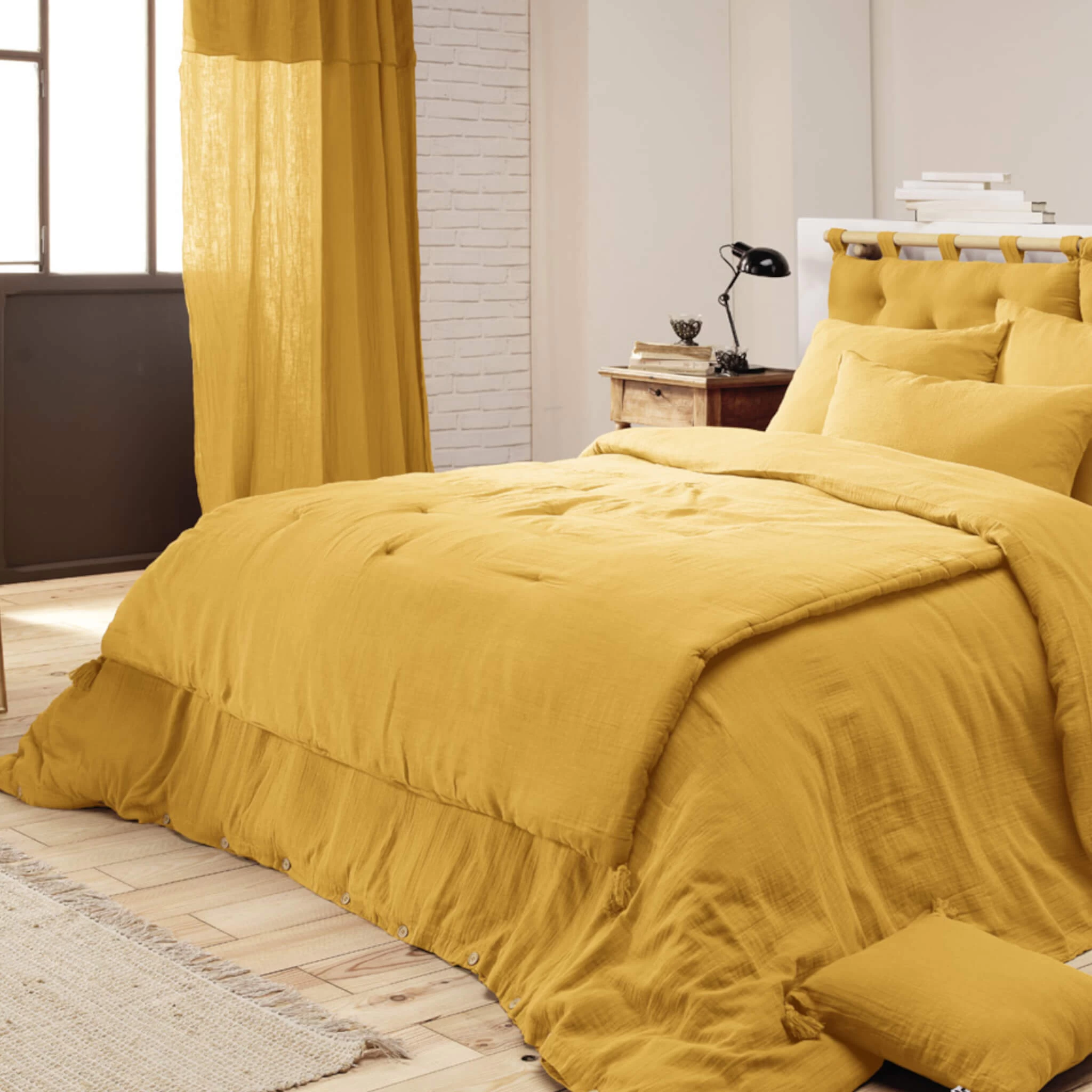 Couvre-lit double gaze de coton jaune. Ce