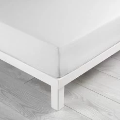 Blanc. Sobre et élégant, ce drap housse au coloris uni vous