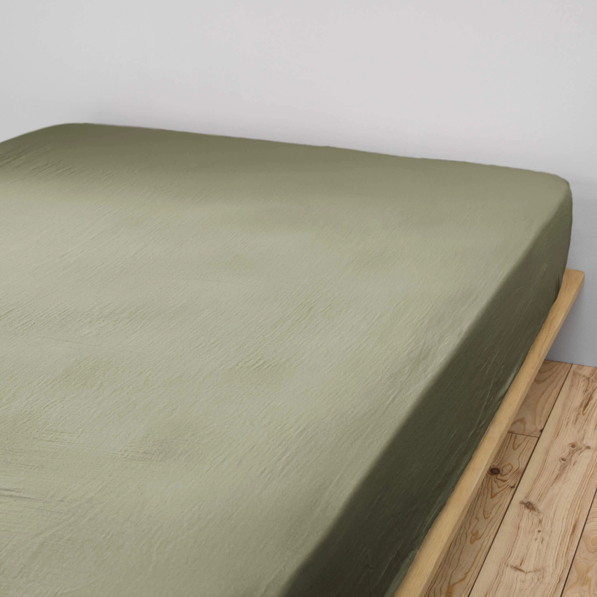 Drap housse double gaze de coton kaki