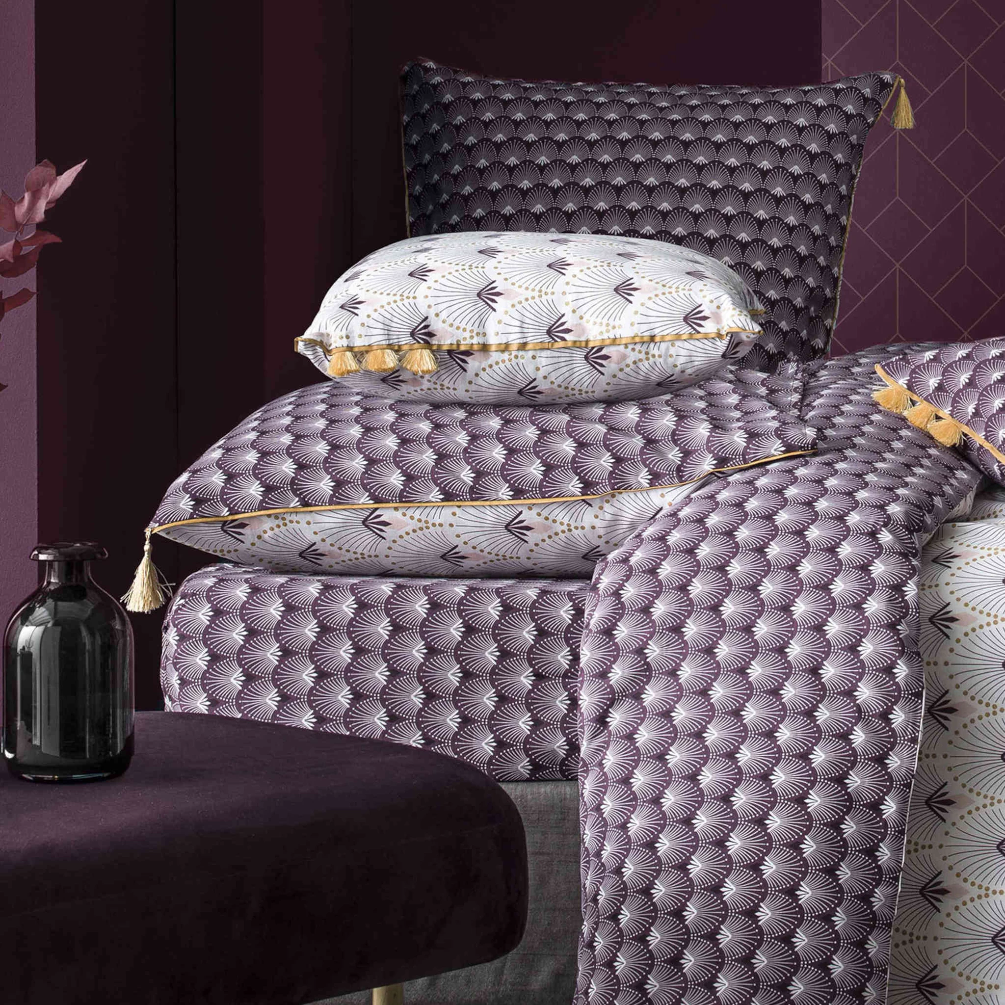 Déco de ce drap-housse et son coloris prune lui donnent un