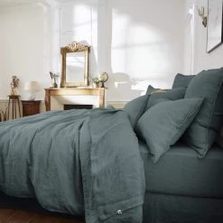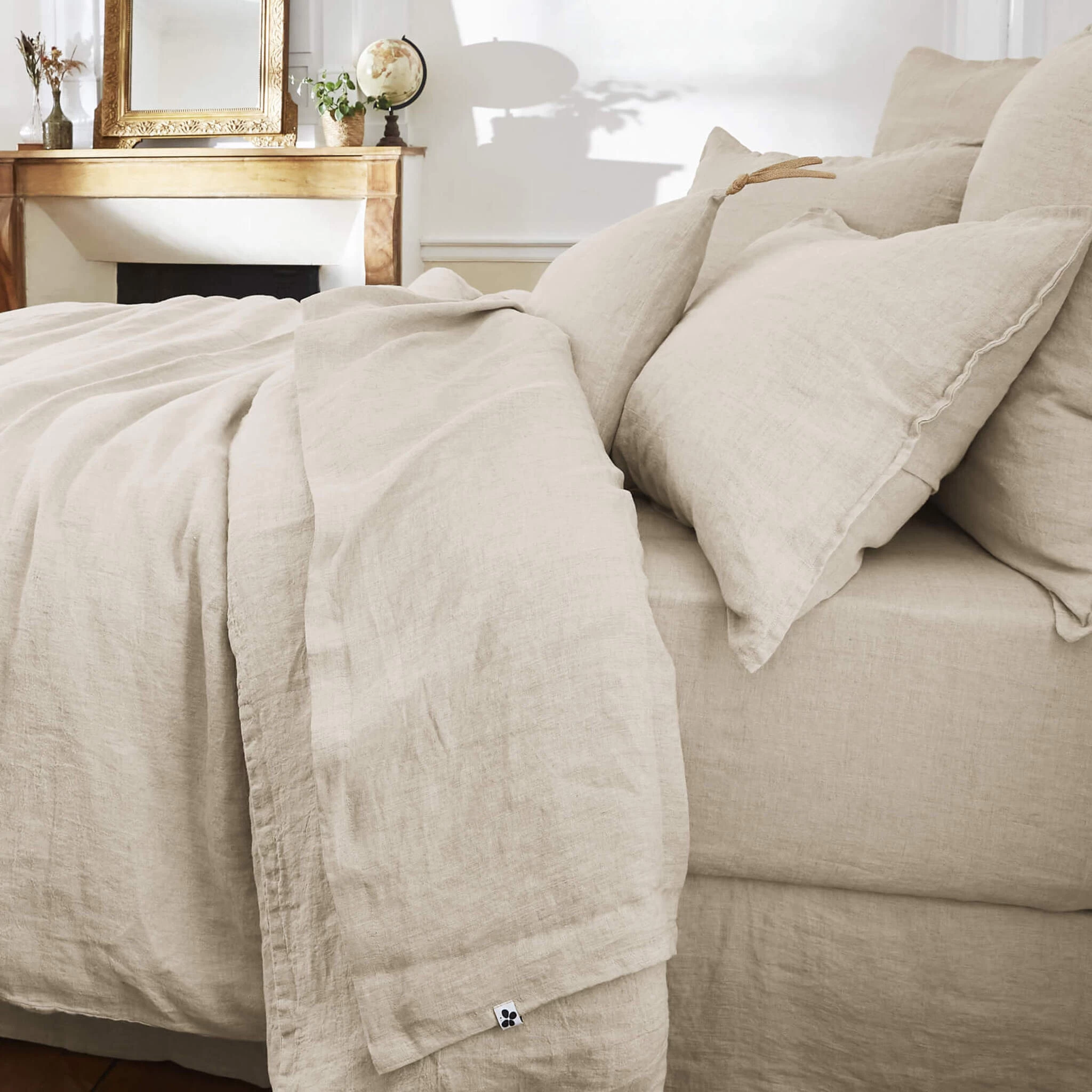 Le lin lavĂ© est le rĂ©sultat d’une toile de lin soumise Ă plusieurs lavages effectuĂ©s Ă haute tempĂ©rature puis sĂ©chĂ©e au tambour. RĂ©alisĂ© plusieurs fois, ce processus permet d’adoucir le tissu et d’obtenir le lin lavĂ©. Cette mĂ©tode de production distingue ainsi le lin lavĂ© du lin traditionnel donnant une matière noble au tissage serrĂ© qui après un premier aspect rugueux, se rĂ©vèle ĂŞtre une matière très douce lavage après lavage. Très rĂ©sistant, le lin lavĂ© est rĂ©putĂ© inusable. Vous pourrez ainsi conserver votre drap plat en lin lavĂ© dans un excellent Ă©tat pendant de nombreuses annĂ©es. Autre avantage, le lin lavĂ© s’adapte Ă toutes les saisons. En effet, il procure de la fraĂ®cheur en Ă©tĂ© et garde la chaleur en hiver grâce Ă sa texture aĂ©rĂ©e qui laisse circuler l’air, absorbe l’humiditĂ© et sèche très rapidement.Â