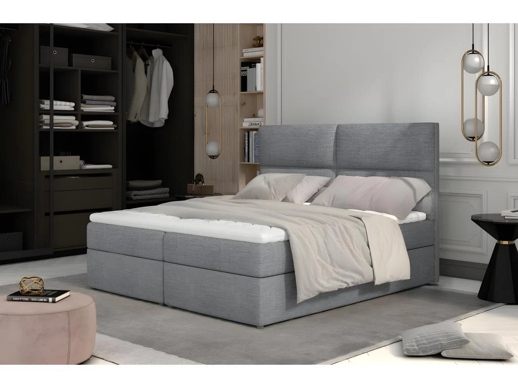 Un lit boxspring dans votre chambre vous assure un sommeil de la plus haute qualitĂ©. La tĂȘte de lit haute et Ă©lĂ©gante est divisĂ©e en quatre sections, mettant en valeur la finition et servant Ă©galement de repose-tĂȘte ou de dossier confortable. La finition du sommier tapissier est un avantage important Ă prendre en considĂ©ration. Le matelas Ă ressorts Bonnell de 15 cm d’Ă©paisseur trĂšs confortable et le surmatelas de 4 cm offrent un niveau de douceur ultime et un confort trĂšs agrĂ©able avec un bon soutien.