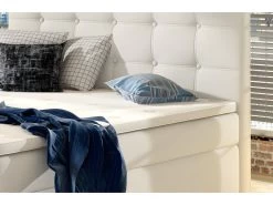 Ce lit de type boxspring, avec un matelas haut et une structure spacieuse et rembourrée. Dispose d’un matelas à ressorts bonnell d’une hauteur de 20 cm, équipé de couches supplémentaires – haut et bas, en mousse T25 souple et d’un surmatelas en mousse T21 d’une épaisseur de 4 cm. Le rembourrage se traduit par un confort maximal pendant le sommeil et un soutien adéquat et stable du corps et un soulagement de la colonne vertébrale. Le lit dispose d’un espace de couchage disponible dans plusieurs dimensions, assurant liberté et confort de repos.