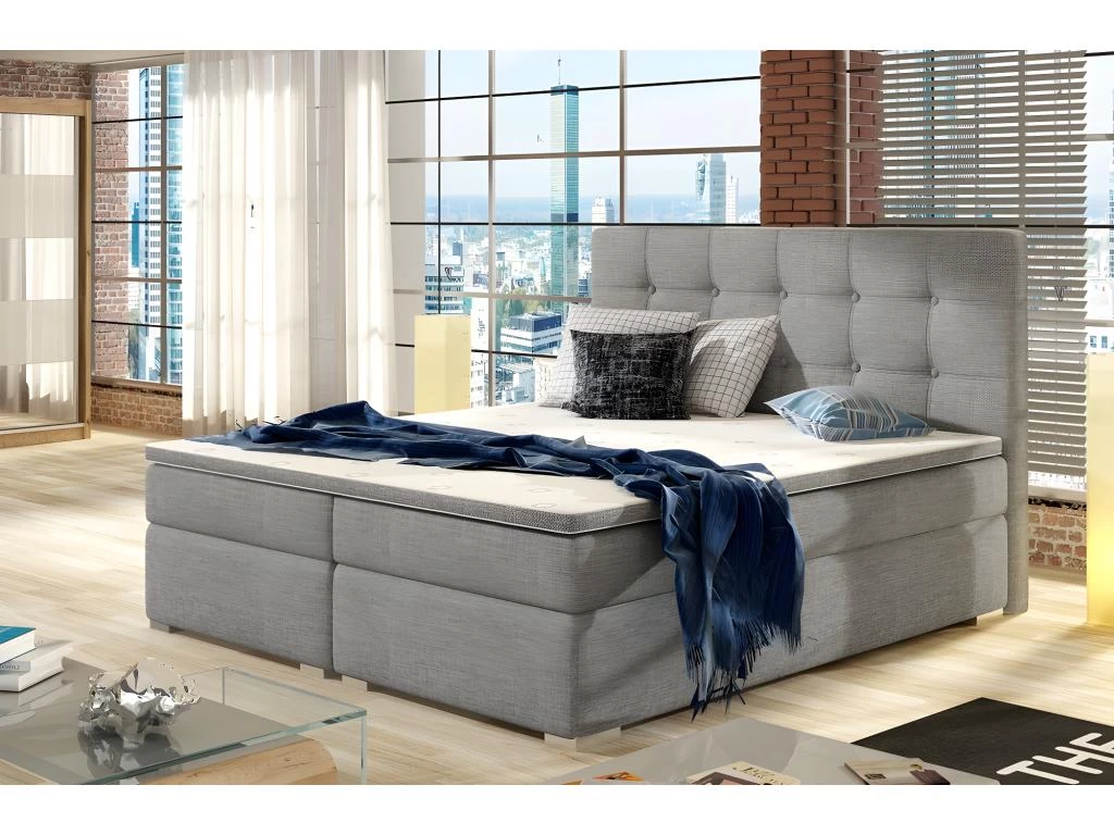 Ce lit de type boxspring, avec un matelas haut et une structure spacieuse et rembourrĂ©e. Dispose dâun matelas Ă ressorts bonnell d’une hauteur de 20 cm, Ă©quipĂ© de couches supplĂ©mentaires – haut et bas, en mousse T25 souple et d’un surmatelas en mousse T21 d’une Ă©paisseur de 4 cm. Le rembourrage se traduit par un confort maximal pendant le sommeil et un soutien adĂ©quat et stable du corps et un soulagement de la colonne vertĂ©brale. Le lit dispose d’un espace de couchage disponible dans plusieurs dimensions, assurant libertĂ© et confort de repos.
