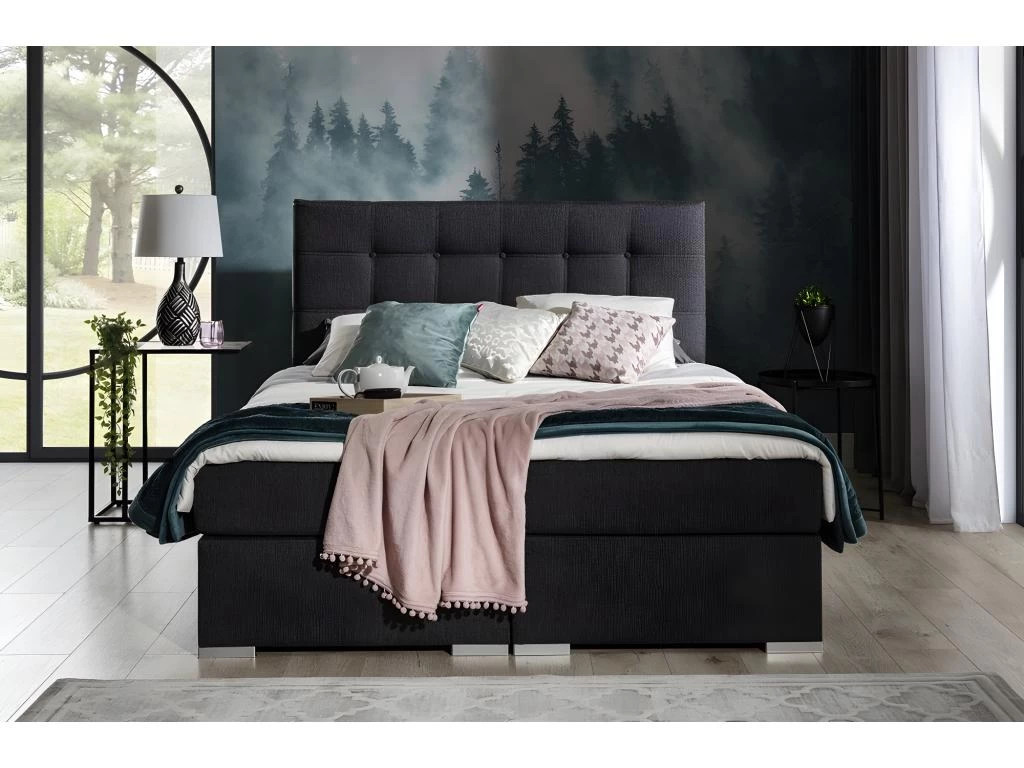 Ce lit de type boxspring, avec un matelas haut et une structure spacieuse et rembourrĂ©e. Dispose dâun matelas Ă ressorts bonnell d’une hauteur de 20 cm, Ă©quipĂ© de couches supplĂ©mentaires – haut et bas, en mousse T25 souple et d’un surmatelas en mousse T21 d’une Ă©paisseur de 4 cm. Le rembourrage se traduit par un confort maximal pendant le sommeil et un soutien adĂ©quat et stable du corps et un soulagement de la colonne vertĂ©brale. Le lit dispose d’un espace de couchage disponible dans plusieurs dimensions, assurant libertĂ© et confort de repos.