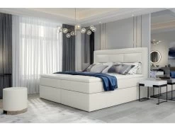 Ce lit sophistiquĂ© dans un style actuel et Ă©lĂ©gant. Conçu dans les meilleurs matĂ©riaux. Le simili cuir est rĂ©sistant et de qualitĂ©. son design pour satisfaire les goĂ»ts des plus exigeants. Une tĂȘte de lit Ă©lĂ©gante avec un motif gĂ©omĂ©trique, ainsi qu’un design Ă©purĂ©. La tĂȘte de lit est rembourrĂ©e de mousse insensible Ă la dĂ©formation, ce qui fournira un soutien dorsal confortable pendant le repos du soir. GrĂące Ă la structure solide et durable, le lit garantit une bonne utilisation pendant de nombreuses annĂ©es. EquipĂ© dâun trĂšs confortable matelas Ă ressorts Bonell et d’un surmatelas, ce qui augmente sans aucun doute le confort d’utilisation. Autre avantage supplĂ©mentaire de ce lit ce sont ses deux grands coffres de rangement. Ce beau lit vous apportera un confort de sommeil et vous ravira par son design au style raffinĂ©.