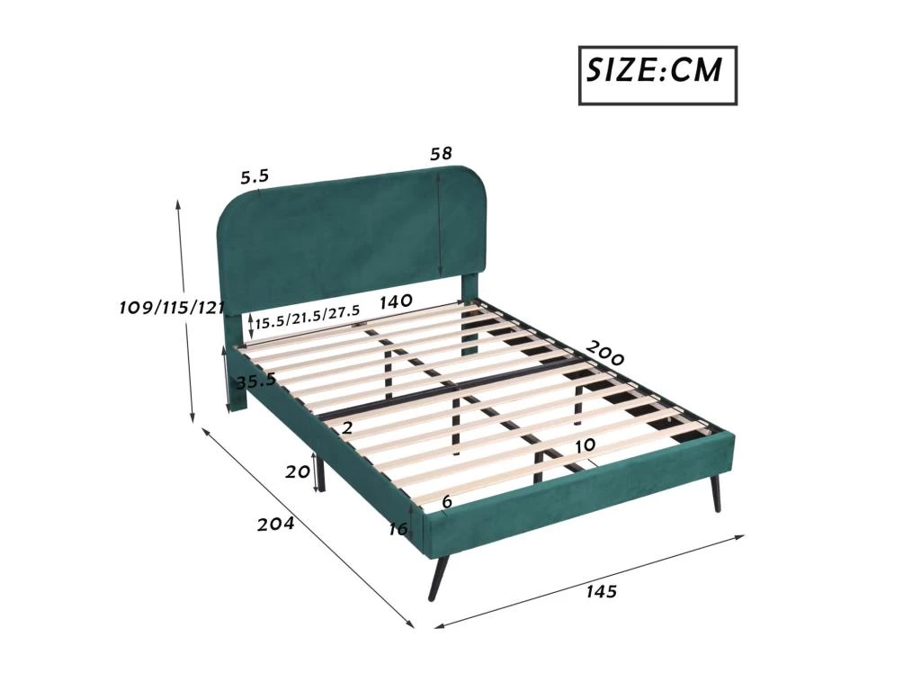 Avec les tissus en velours vert et la tête de lit rembourée, ce lit adulte possède une apparence spéciale et élégante, il s’adapte parfaitement à votre chambre à coucher ou chambre d’ami.