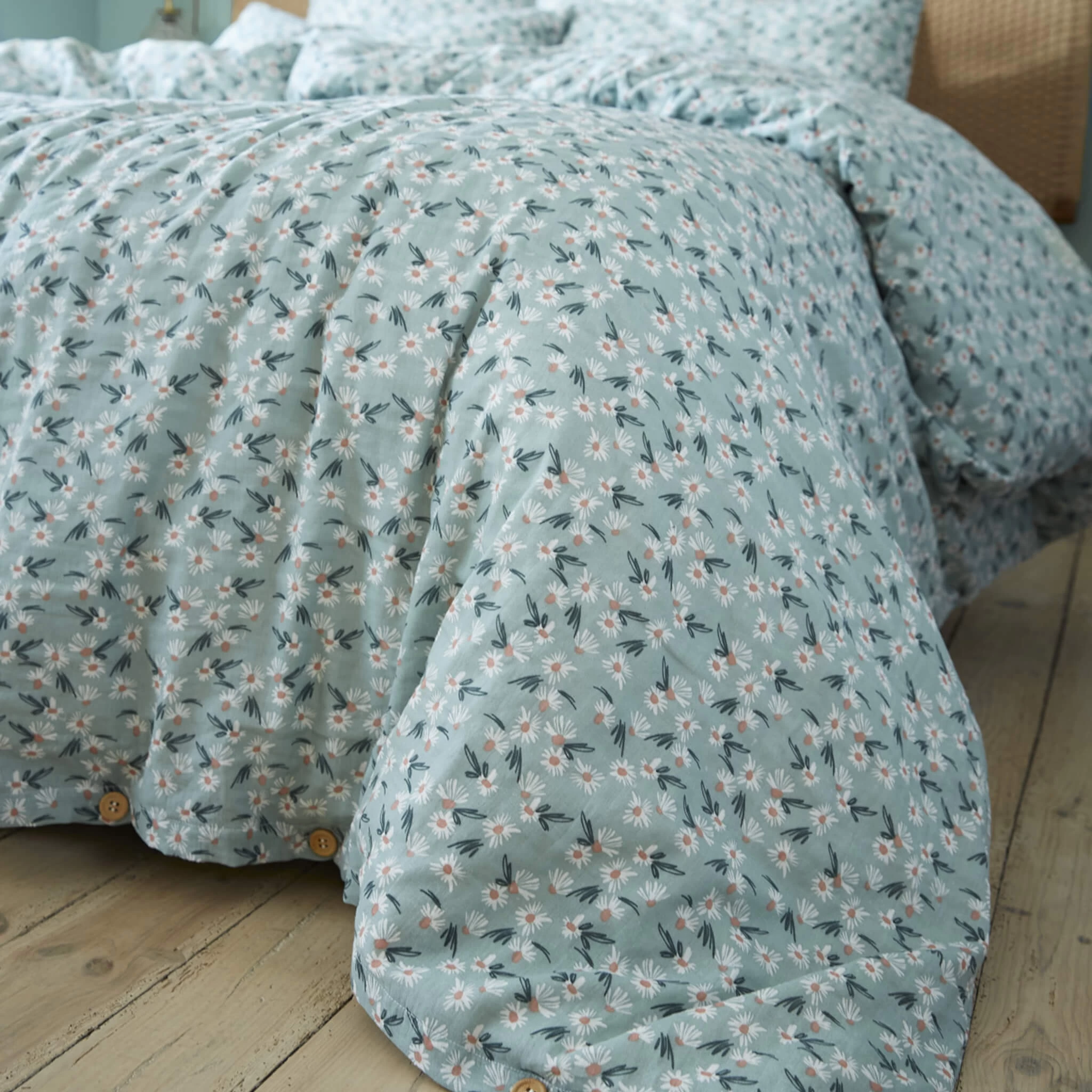 Cette housse de couette imprimĂ© floral dispose d’une ouverture Ă boutonnières avec de jolis boutons en bois afin de vous assurer un maintien optimal de votre couette tout au long de la nuit.