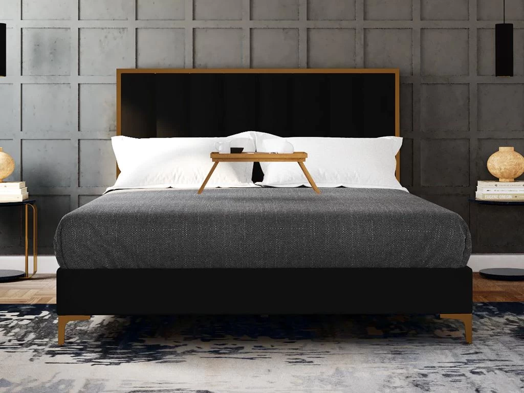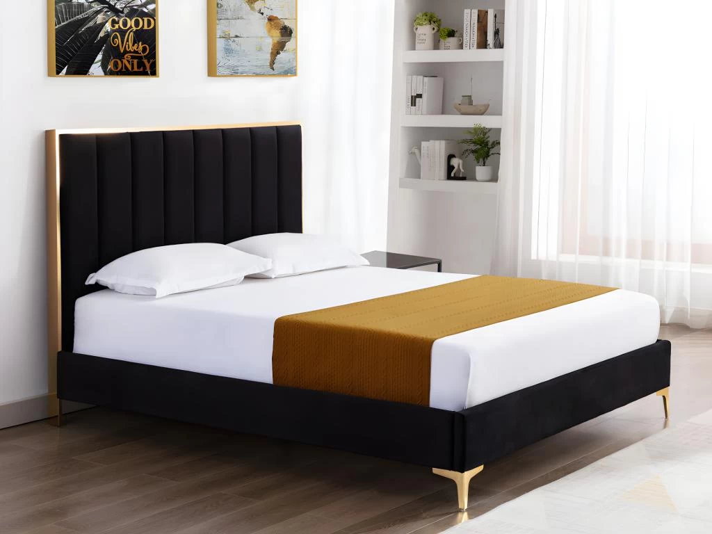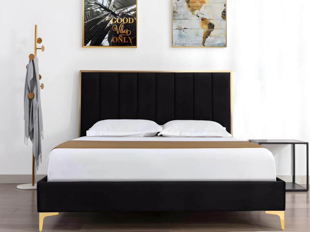 Glamour et sophistiqué, laissez vous tenter par le lit CLARISSE ! Son revêtement en velours et ses détails en acier doré apporteront à votre chambre une touche romantique et élégante.