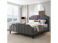 - 12 lattes renforcées offrent un excellent soutien pour le matelas (non inclus), pas de bruit pour une excellente expérience de sommeil. La tête de lit est rembourrée de mousse hautement élastique et de tissu de velours pour une sensation de confort.