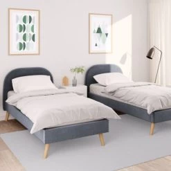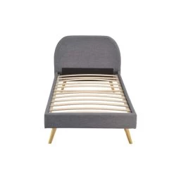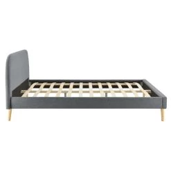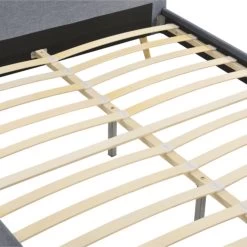 Lit avec sommier à lattes intégré et tête de lit en tissu gris foncé – LT17106.