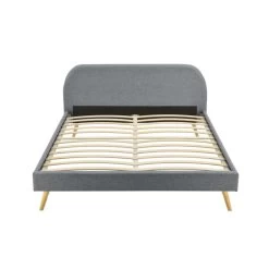 Ce lit au style scandinave est idéal pour parfaire la décoration de votre chambre. Il est composé d’une structure en contreplaqué, bois MDF et métal. Un sommier à lattes est intégré pouvant accueillir des matelas (non-inclus) en 90×190, 140×190 ou 160×200 en fonction de la taille choisie. Ce cadre à lattes est soutenue par deux pieds de renforts en métal.