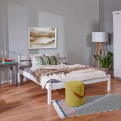 Avec sa structure en pin massif blanc, ce lit tendance se distingue par sa solidité de fabrication et son design. Le pin massif offre une plus longue durée de vie au produit car il n’a pas été transformé et n’a pas subis de traitement chimique.