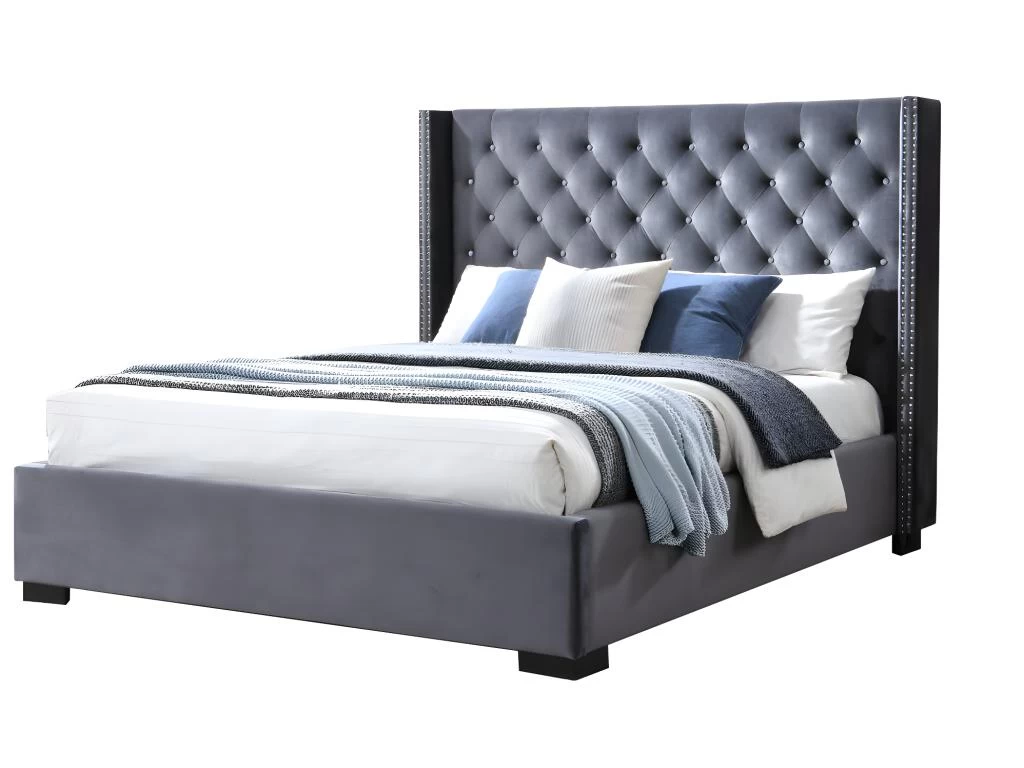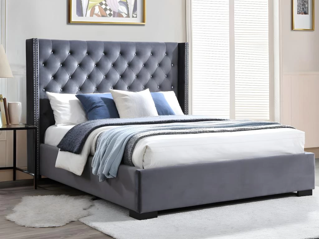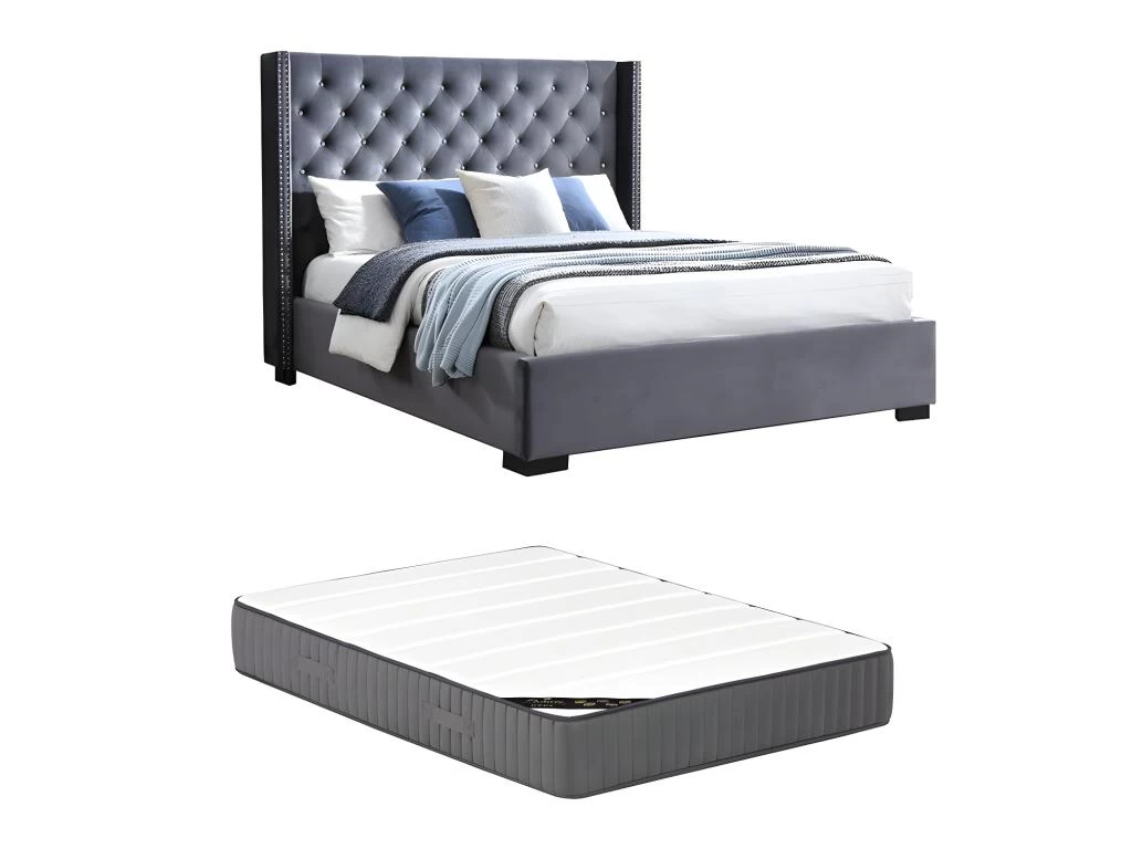Avec son look velours capitonné et la solidité de sa structure en MDF et bois, ce lit MASSIMO va vite devenir l’élément clé de votre chambre !