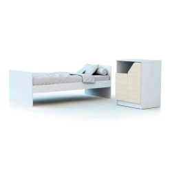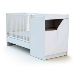 Ce lit bébé est accompagné d’un meuble à langer possédant une structure en bois massif et d’un plan à langer amovible. Ce meuble à langer est la solution idéale pour bénéficier d’une table à langer et d’un meuble de rangement dans la chambre de bébé. Evolutif également, le plan à langer peut être retirer et le meuble se transformera en commode de rangement. Ce qui apporte une plus grande longévité des matériaux. Le plan a langer est prévu pour accueillir un matelas à langer de taille 50×70 cm (en option, vendu séparément).