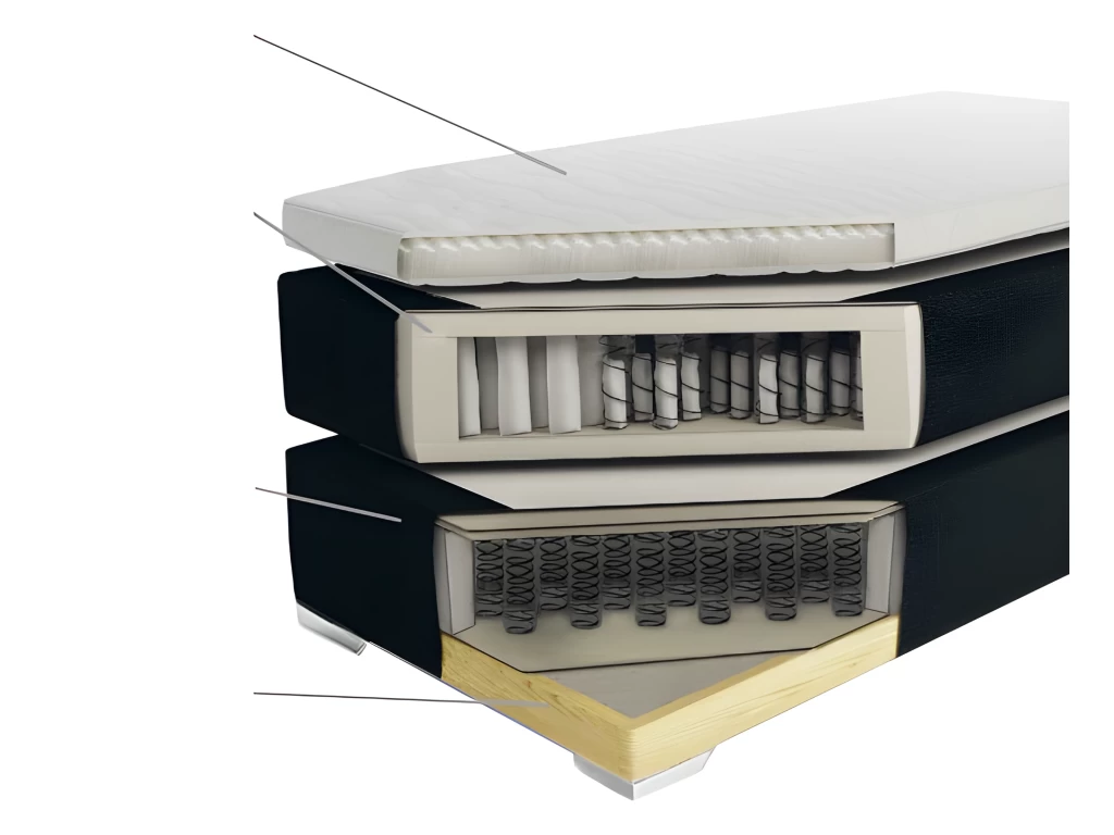 CaractĂ©ristiques clĂ©s: RĂ©partition Ă©quilibrĂ©e du poids assure un confort optimal, Ressorts ensachĂ©s et 5 zones isolĂ©es par deux Ă©paisseurs de mousse, La densitĂ© moyenne du matelas (H2), FlexibilitĂ© individuelle grâce Ă une construction multicouche, Style classique, Structure hygiĂ©nique permet une bonne circulation de l’air.