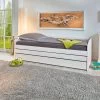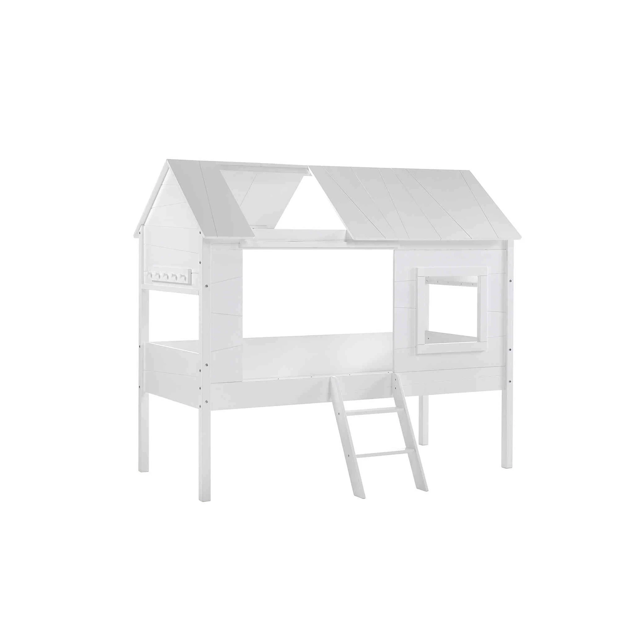 Lit cabane en pin massif et bois MDF de couleur blanche, il est prĂ©vu pour accueillir un matelas et sommier de dimensions 90×200 (matelas et sommier en option, non inclus). Enveloppante avec son toit et disposant de fenĂȘtres latĂ©rales, cette cabane a tout d’une vraie et sera un formidable terrain de jeux et de rĂȘves pour votre enfant. Il n’y aura pas de dĂ©coloration dans le temps grĂące Ă la laque UV. Ce lit conviendra aussi bien pour une chambre de fille que celle d’un garçon.