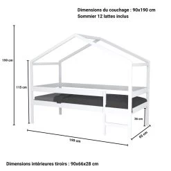 Lit cabane enfant bois blanc laquĂ© 90×190 – LT14054