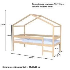 Lit cabane enfant bois naturel laquĂ© 90×190 – LT14052