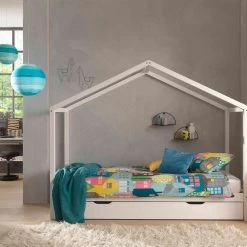 Lit cabane enfant en bois massif 90×200 avec tiroir de lit –