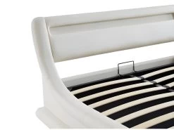 Le lit IRIS, moderne et ingĂ©nieux, vous apportera confort et praticitĂ© grâce Ă sa finition en simili et Ă son grand coffre de rangement situĂ© sous le sommier. Son Ă©clairage Ă LEDs inclus dans la tĂŞte de lit illuminera vos nuits.Â