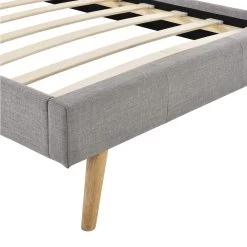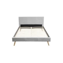 Lit en bois avec tĂȘte de lit tissu gris clair – LT17020