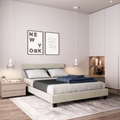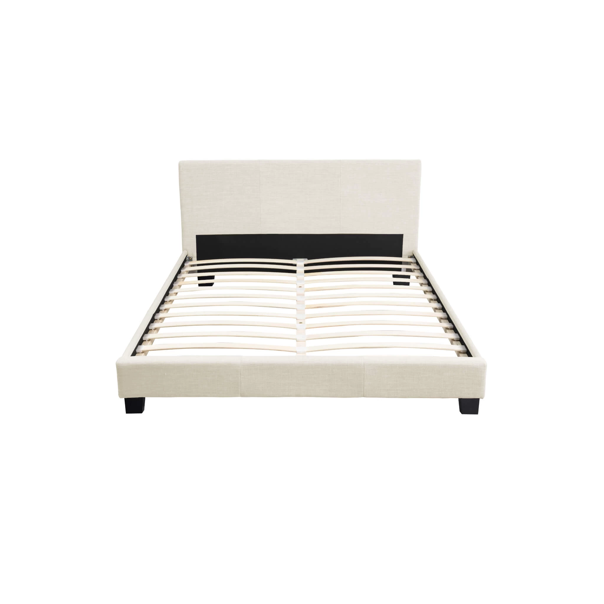 Lit en bois avec tĂȘte de lit tissu naturel 140×190 – LT17021