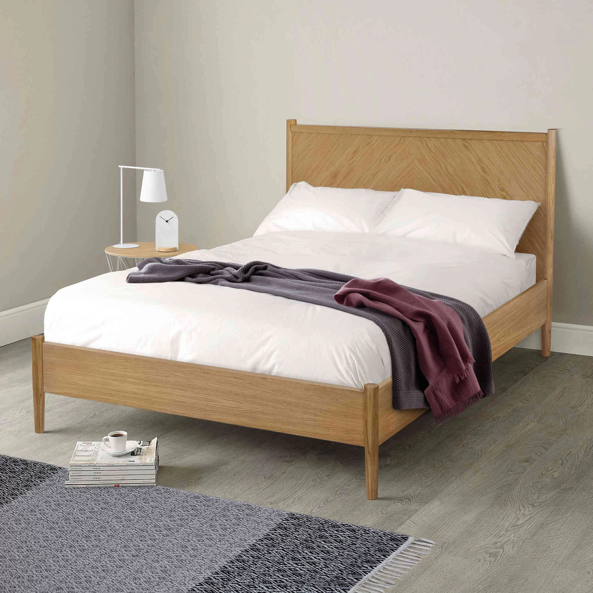 Lit en bois massif imitation chĂȘne – LT0019