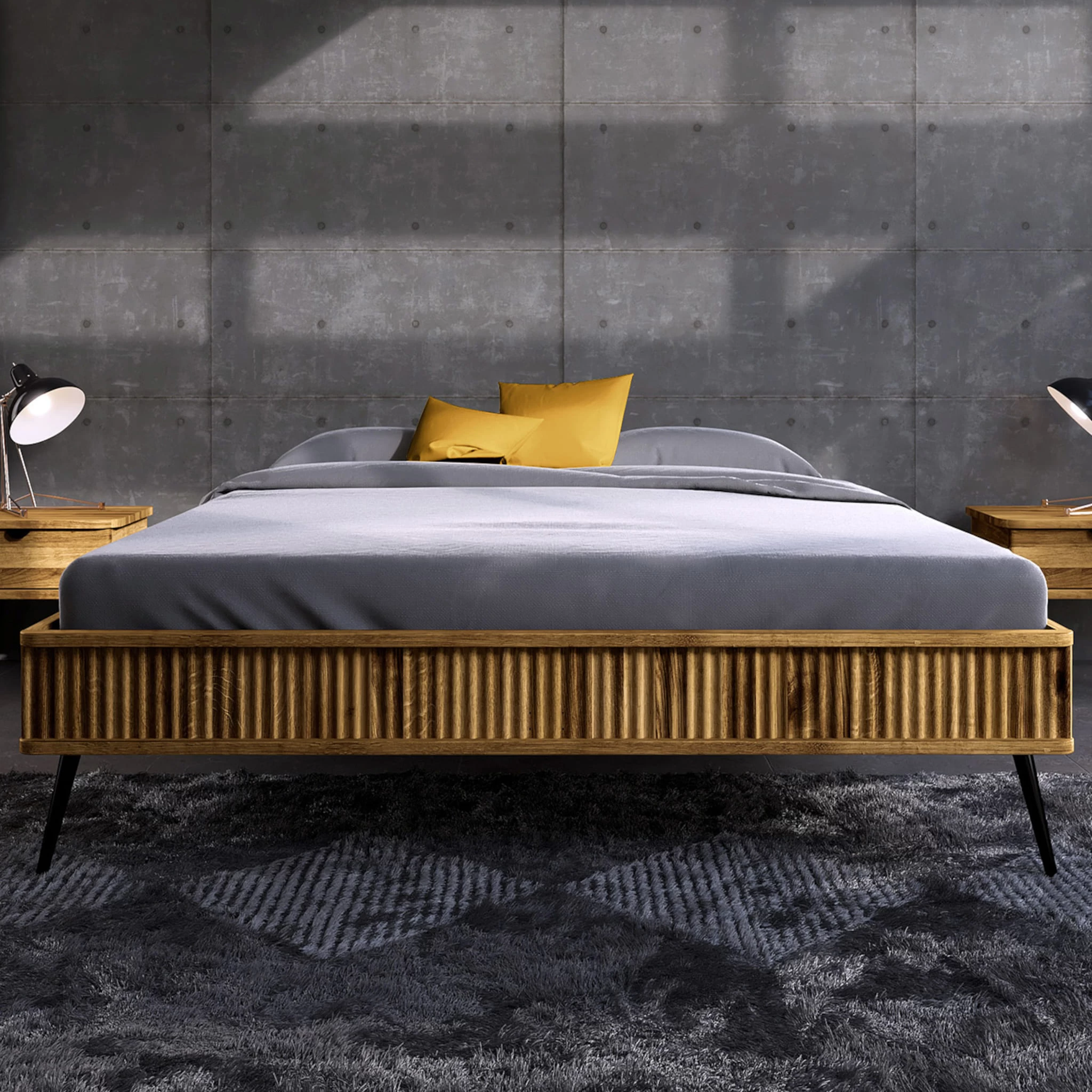 Lit en chêne massif clair avec pieds inclinés en métal – LT36002