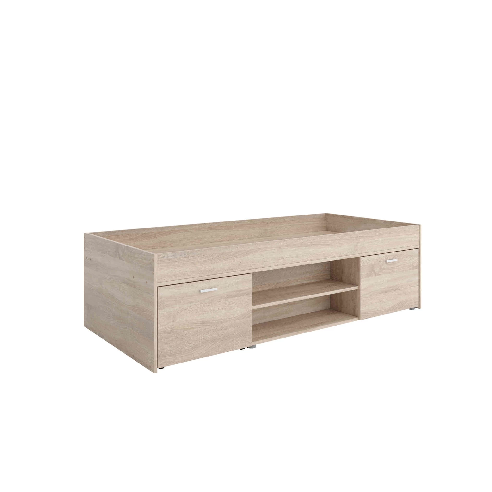 Lit enfant en bois imitation chĂŞne clair 90×200. Ce