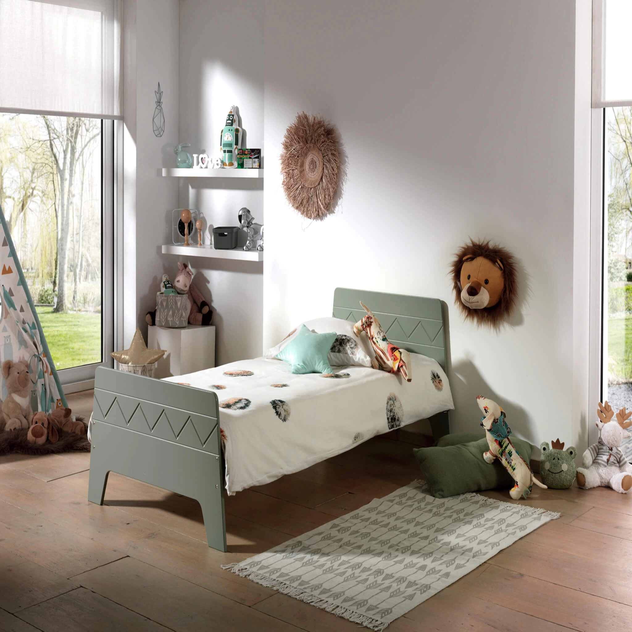 Remarque : les Ă©lĂ©ments de dĂ©coration prĂ©sents sur le visuel d’ambiance ne sont pas fournis avec le lit.